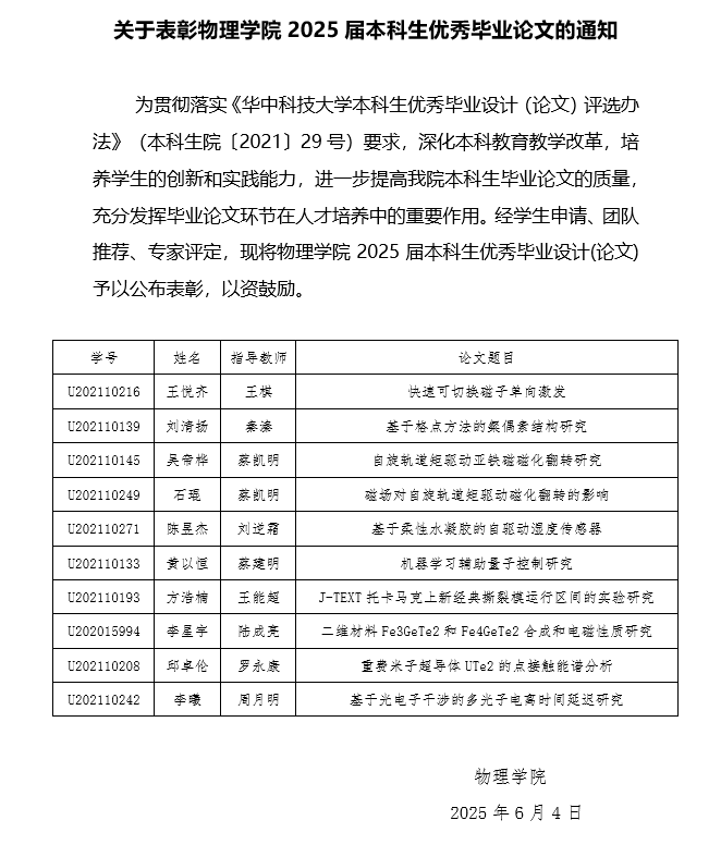 关于表彰2025届本科生优秀毕业论文的通知