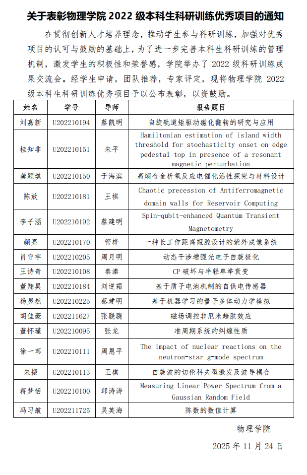 关于表彰2022级本科生科研训练优秀项目的通知