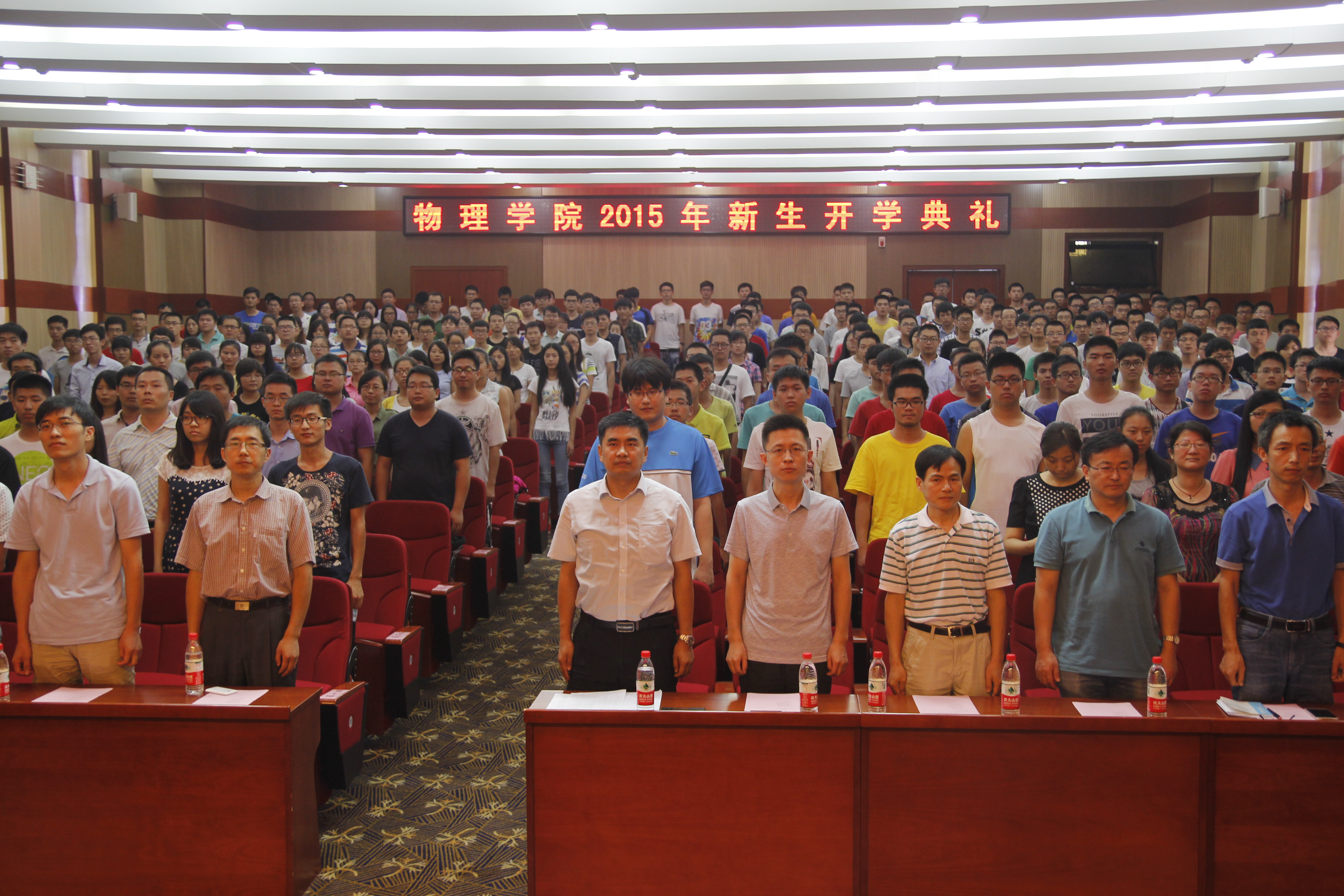 教师代表王兵教授发言。他对2015级新生提出了四点建议,一是明确目标,追求卓越;二是掌握方法,勇对挫折;三是活泼开朗,敢于交流;四是关爱同学,珍视友谊。他希望同学们能够尽早规划自己的老员工涯,充实快乐的度过每一天。老生研究生代表薛超、本科生代表王铂钧以及新生代表王雨欣依次作了发言。博士研究生薛超同学与大家分享了自己成长的“一二三”,即为树立一个目标,永往直前;永葆两种热情:对科学研究充满热情和对生活充满热情;心怀三种美好:学术成果收获的美好,综合能力提高的美好304永利集团未来的美好。最后他勉励同学们,人的一生很短暂,要踏实走好每一步。2013级本科生王铂钧同学分享了自己成长经历。他从小酷爱天文,大学期间公司对他的浓厚兴趣给予了很大的支持和培养,他收获很大。他提醒新生步入大学殿堂后要树立明确的个人发展目标,学习依然是首要任务。王雨欣同学表达了自己加入304永利集团大家庭的喜悦与激动,以及对未来的期望和梦想。她代表15级全体新生承诺要遵守校规,专心学习,努力提高,勇于创新。