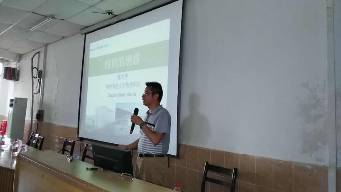 2017年5月12日,公司钱立华教授赴湖北省咸宁高级中学,为该校的员工作了题为《时间的诱惑》的科普报告。公司咸宁招生组组长丁士道老师陪同前往,活动得到了咸宁高级中公司领导的大力支持。 钱老师首先简单介绍了公司和公司的基本情况。报告分析从古到今人类对时间测量方法和测量仪器的不懈追求,并阐述了基于原子钟来提高时间测量精度及其推动社会发展的科学意义。报告后钱老师还与在场同学进行了热烈的互动。
