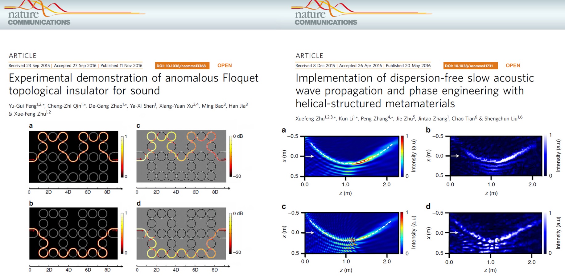 值得一提的是,祝雪丰副教授为第一作者的另一重要成果也于今年5月20日在《自然∙通讯》在线发表,题为《利用螺旋声超材料实现无色散慢波传输与相位操控》(Implementation of dispersion-free slow acoustic wave propagation and phase engineering with helical-structured metamaterials)。该成果由祝雪丰副教授,香港理工大学祝捷教授,西安光机所张鹏研究员和黑龙江大学刘盛春教授合作完成。`