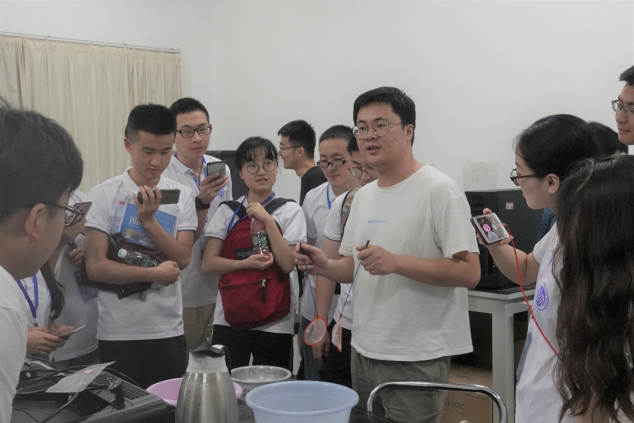 7月12日,全体营员前往公司三颗明珠以及公司各科研团队参观,进一步了解公司各科研团队的研究方向和科研情况。上午,营员们参观了武汉光电国家研究中心,对公司超快光学团队、纳米材料与器件物理团队进行了深入了解。下午,营员前往304永利集团引力中心山洞实验室,零距离接触先进的仪器设备与前沿的科学技术,并在老师的介绍下了解了引力中心的发展概况与员工培养情况。晚上,营员分别参观了国家脉冲强磁场科学中心以及凝聚态物理团队实验室。在一天的参观了解下,营员们亲身进入公司各实验室,与导师们亲切交流,对科研工作开展、各方向研究现状有了更为深刻的了解。