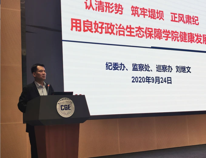 图一 校纪委副书记、监察处处长、党委巡察办主任刘继文讲授廉政党课