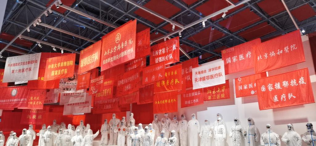 随后全体党员来到“人民至上 生命至上”抗击新冠肺炎疫情专题展,见证中国人民抗疫斗争的不凡历程和伟大实践。该展览全方位展示了抗击新冠疫情全程,实景再现抗疫场景。观看医护人员抢治病人全息影像时,仿佛回到了疫情初期生死竞速的紧张时刻;走进防护服体验舱,切身体会了白衣天使不惧生死的奉献精神;雷神山火神山医院的建成,诠释了“中国速度”和“中国力量”;志愿者、人民保卫大后方的全民抗疫,体现了万众一心的中国凝聚力;“听我说谢谢你,因为你,温暖了四季……”,看到送别援鄂医疗队的感人视频,同志们眼眶湿润,潸然泪下。
