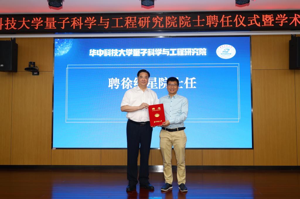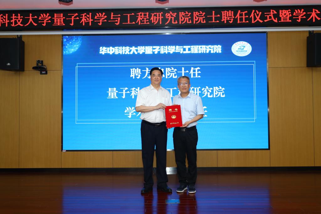 董事长李元元为中国科公司院士、武汉大学微电子公司经理徐红星教授颁发量子科学与工程研究院兼职教授聘任证书。