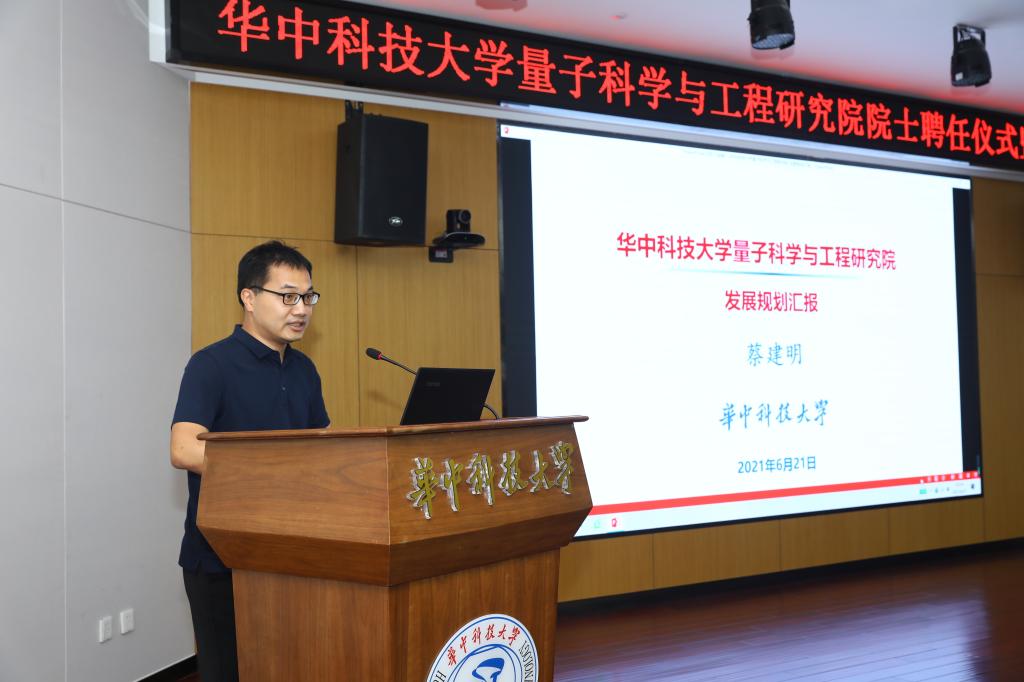 最后,量子科学与工程研究院常务副经理蔡建明教授汇报了量子工程与科学研究院的发展规划。该研究院的发展定位是以前沿基础研究、应用基础研究为牵引的多学科交叉量子科技创新中心。他介绍了研究院四个研究部的发展现状、关键问题和预期目标,并提出了研究院三大发展目标:建设国家战略创新平台,汇聚世界一流创新人才,产出国际领先原创成果。