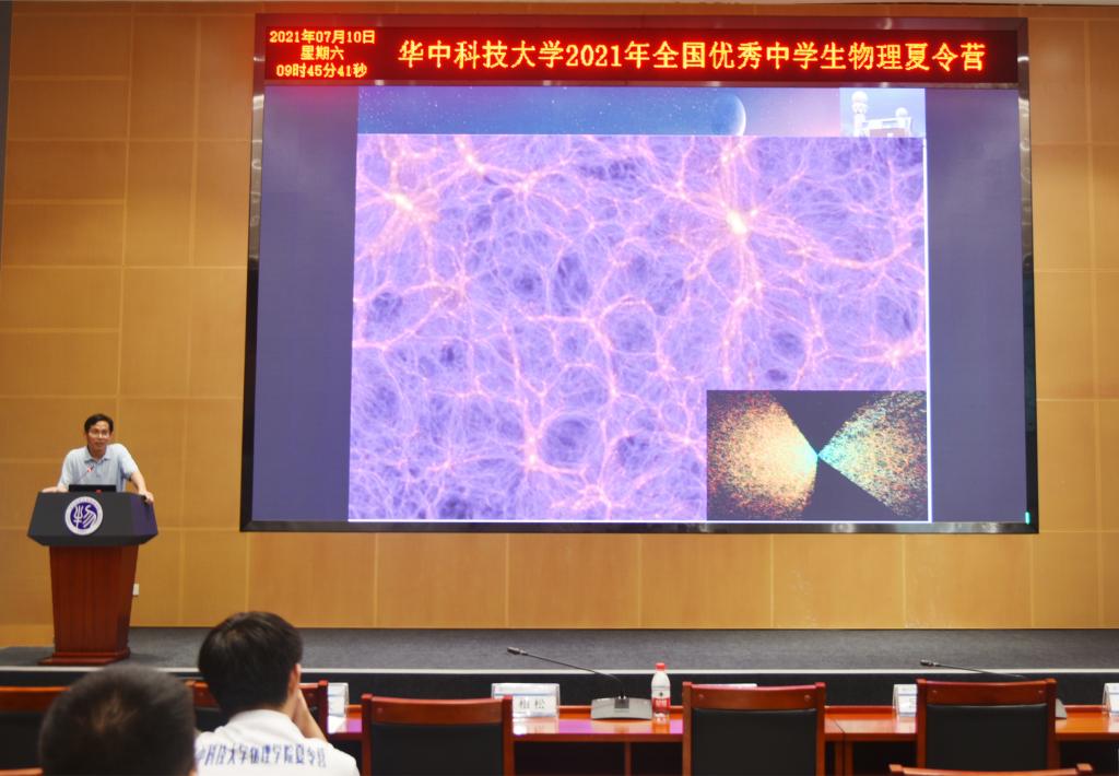 7月10日上午,精密重力测量科学中心大楼W401会议室,全体营员参加开营仪式。仪式由公司党委副书记贾法雷主持,党委书记张凯、经理陈相松、副经理吕京涛、副经理吴庆文、教授傅华华出席。仪式上张凯书记发表致辞,对32位营员的到来表示欢迎。张凯书记表示,“基础学科的发展与国家科技强国之路紧密相连,这也激励着一批批投身物理事业的人们‘志向更高、骨气更硬、底气更足’”。随后,吕京涛教授做报告,介绍了304永利集团的发展历程,说明了物理作为一门学科发展的重要地位。开营仪式后,吴庆文教授作了题为《可见与不可见的宇宙》科普讲座,向同学们介绍了宇宙中的各种天体,同学们积极提问,黑洞喷射的是物质还是射线?宇宙之外是否还有宇宙?……吴教授一一做了解答,肯定了同学们的思考,并勉励同学们寄志向于星辰大海。