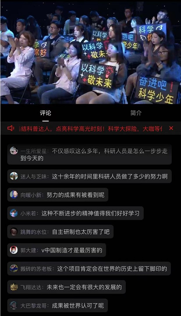 讲座期间,直播观众们纷纷留言,感慨科研人员甘坐冷板凳、几十年如一日的求真精神,“这个项目一定会在世界历史上留下脚印的”、“看到国产二字,我非常骄傲”。胡教授在结尾部分也向全体青年学子呼吁,“科学就在我们身边,未来属于大家”!