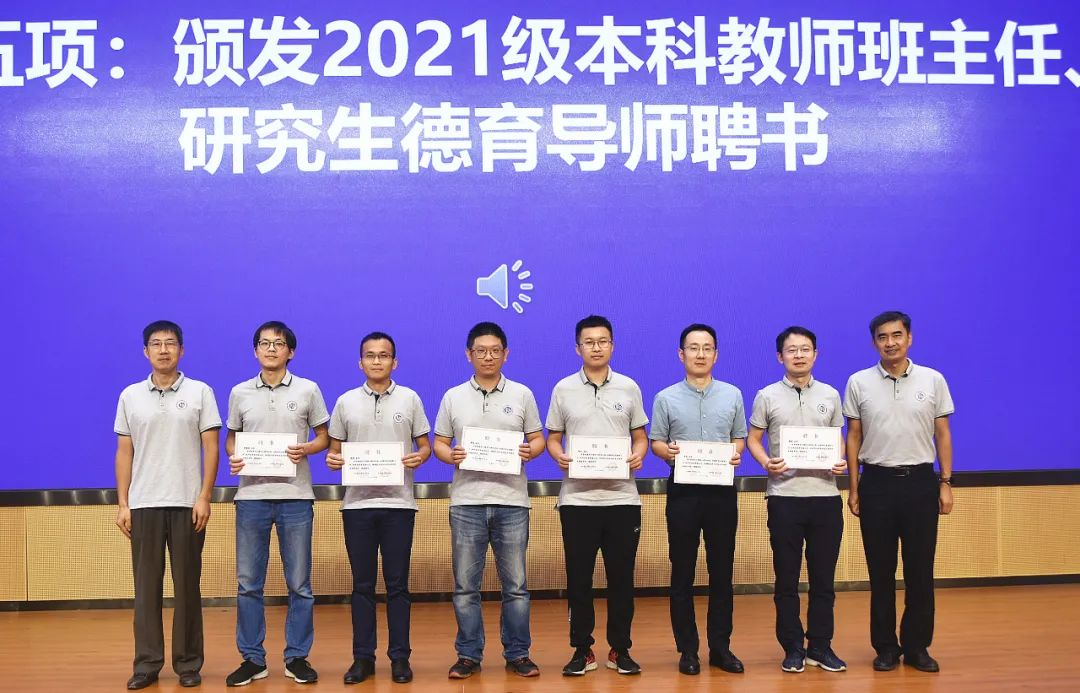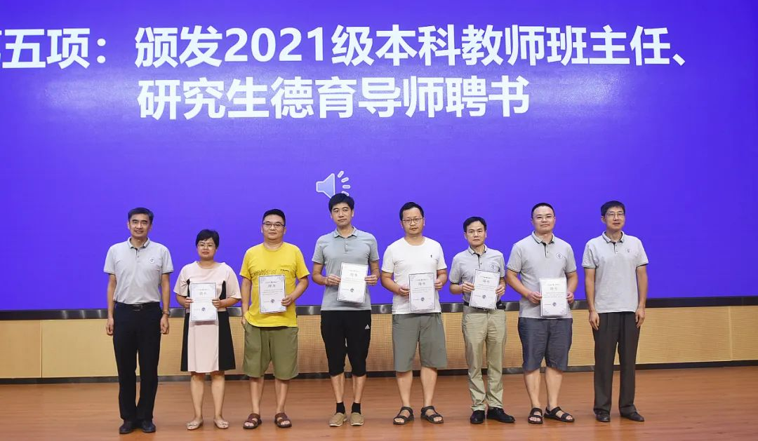 党委副书记贾法雷依次介绍了本科生教师班主任及研究生德育导师,张凯书记和陈相松经理为教师班主任及德育导师颁发聘书。