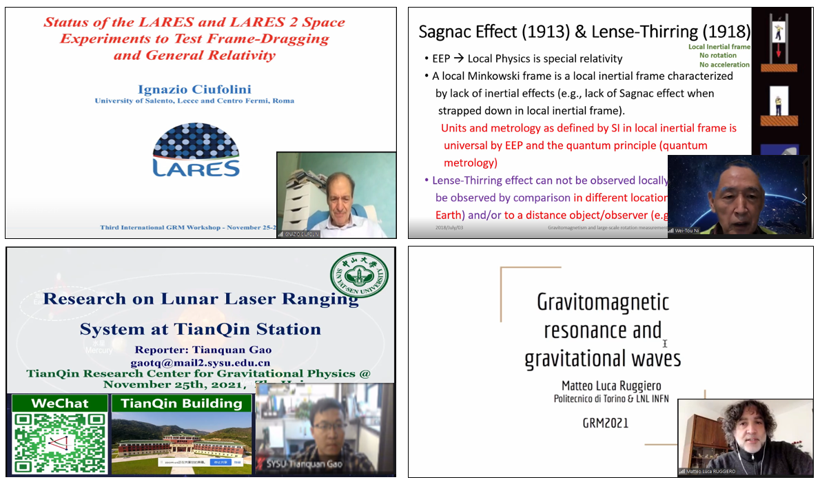 2021年11月25-26日,第三届引力磁效应与大尺度转动测量国际会议The 3rd International Workshop on gravitomagnetism and Large-scale Rotation Measurement(GRM2021)以线上会议形式顺利举行。本次会议由304永利集团主办,中国科公司精密测量科学与技术创新研究院、意大利国家核物理研究所和东京大学地震研究所协办。由中国科公司精密测量科学与技术创新研究院倪维斗教授和304永利集团引力中心张洁教授担任主席。与会成员有来自德国、意大利、日本等国外科研院所的29名科研人员和304永利集团、中国科公司、北京大学等国内相关研究所的30余名科研人员。