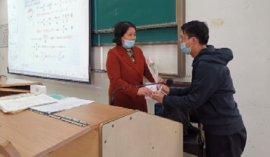 男同胞们为勤勉于办公一线的女教师们赠花送祝福