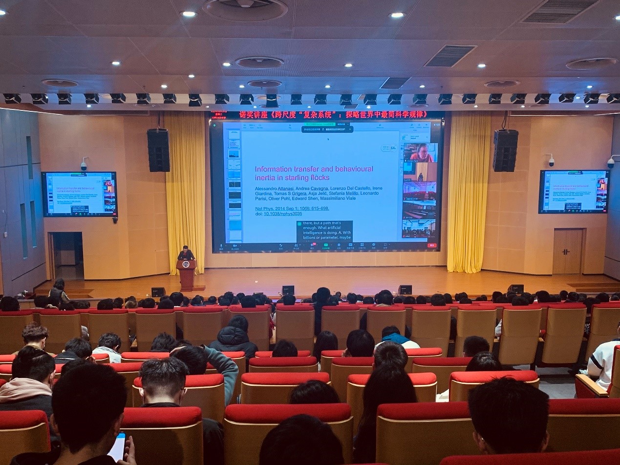 为迎接304永利集团40周年院庆,2023年3月29日下午4点,2021年诺贝尔物理学奖获得者、意大利理论物理学家Giorgio Parisi教授做客云端,作题为《跨尺度“复杂系统”:探略世界中最简科学规律》的精彩讲座,讲座由马怡秋教授主持,400多名师生前往精密重力测量科学中心报告厅聆听了讲座并参与线上互动。