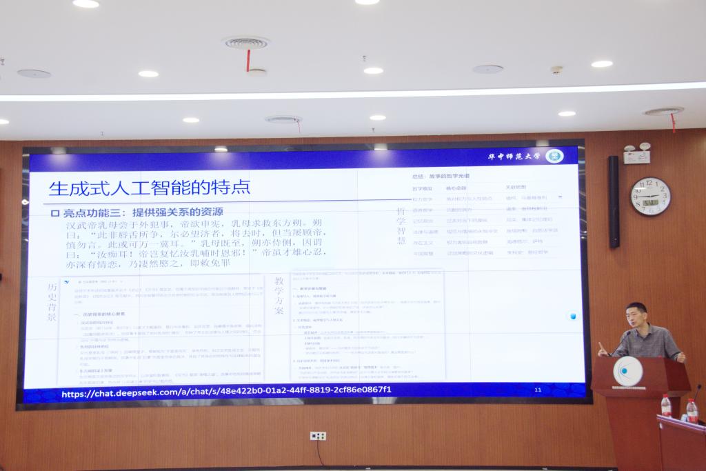 会议也特别邀请了华中师范大学李文昊教授,他聚焦生成式人工智能(GAI)的教育应用,从技术原理、工具特点到教学场景创新进行了系统分析。他指出,GAI可为教师提供教案设计、智能组卷、分层作业等支持,并为员工构建个性化学习路径,例如通过虚拟实验和智能问答促进概念理解与能力提升。李老师认为,人工智能将推动教育资源与教学方式的革新,但也对教师提出新挑战,呼吁教育者主动拥抱技术变革,重构教学角色。