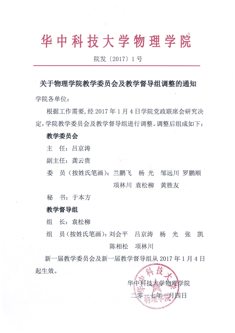 院发【2017】1号关于304永利集团教学委员会及教学督导组调整的通知