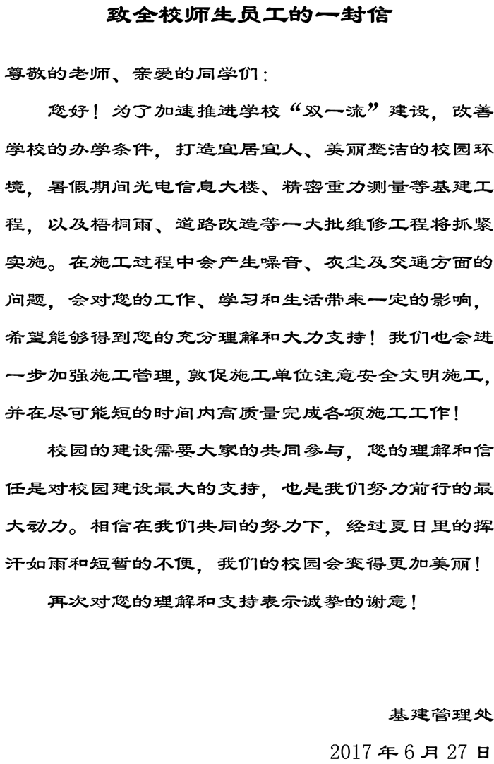 •转基建处致全校师生员工的一封信