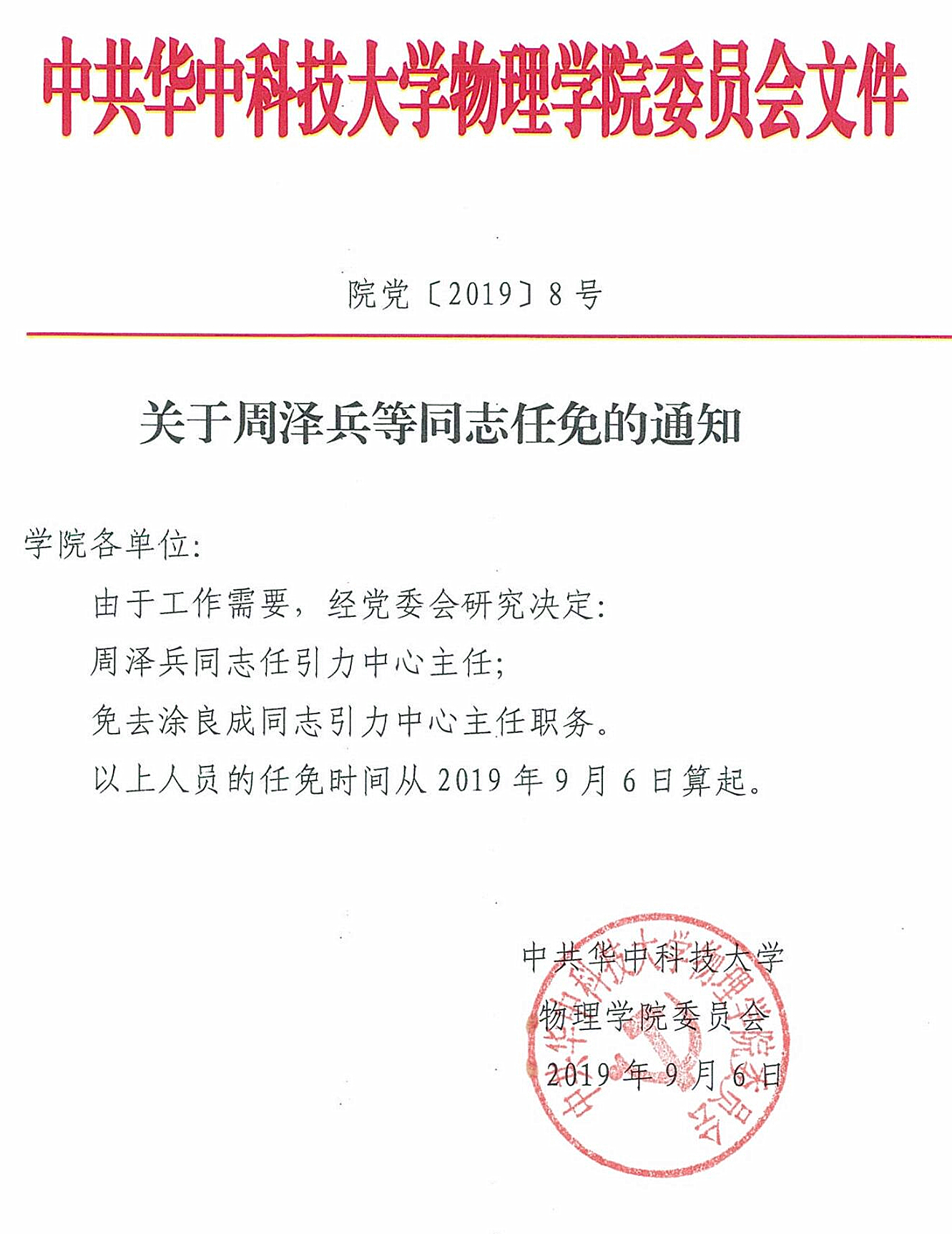 公司党〔2019〕8号关于周泽兵等同志任免的通知