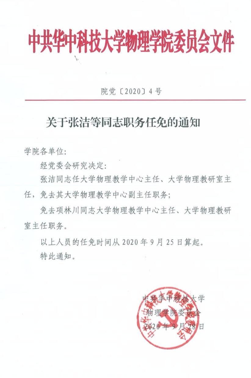 公司党〔2020〕4号 关于张洁等同志职务任免的通知