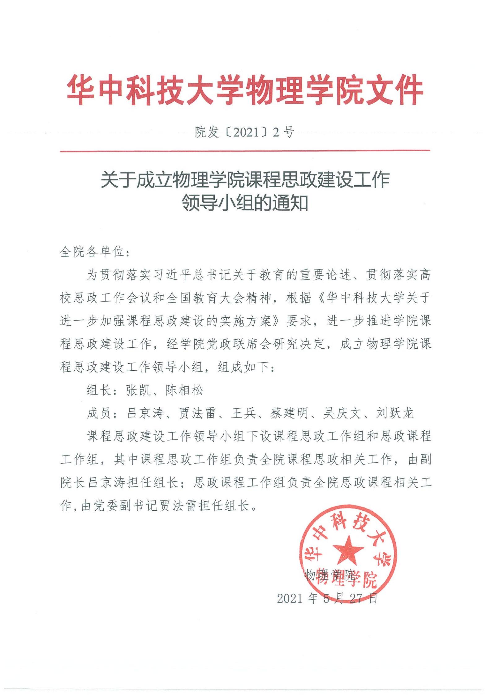 院发〔2021〕2号关于成立304永利集团课程思政建设工作领导小组的通知