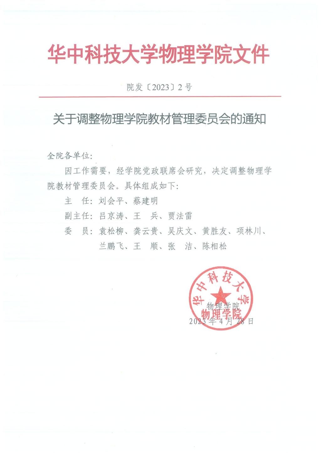 院发〔2023〕2号关于调整304永利集团教材管理委员会的通知