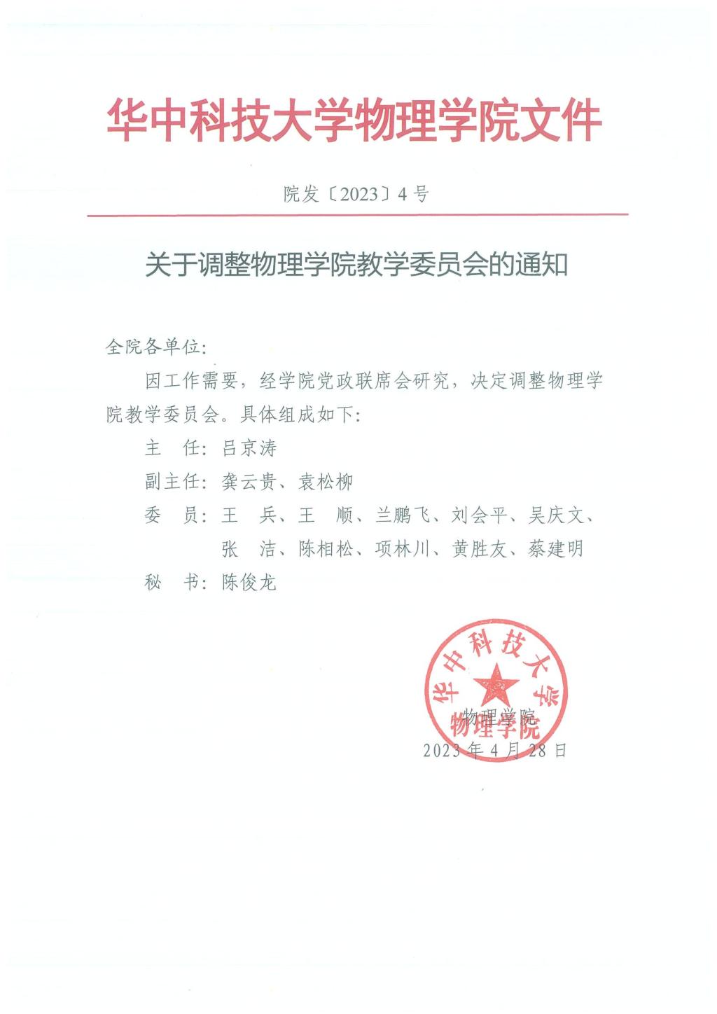 院发〔2023〕4号关于调整304永利集团教学委员会的通知