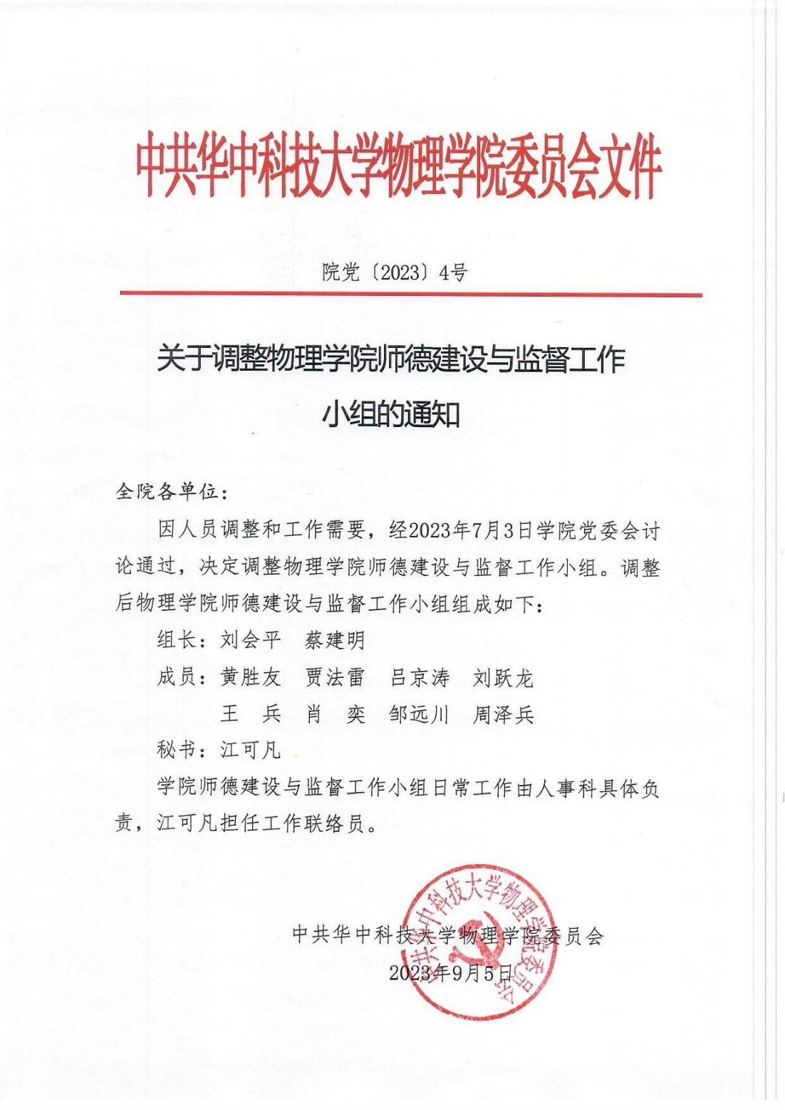 公司党〔2023〕4号关于调整304永利集团师德建设与监督工作小组的通知