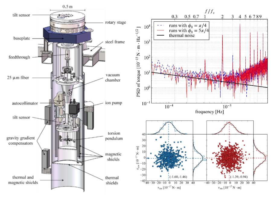 自2006年以来,引力中心研究团队就致力于采用精密旋转扭秤检验等效原理。由于引力非常微弱,因而要检验相应的破缺效应需要克服各种干扰因素,难度较大。研究团队利用公司人防山洞实验室天然恒温、振动小、外部干扰少等优越的条件,历时五年完成了原理性实验,再花费七年时间先后解决了转台转速的精密控制、地磁场的屏蔽、背景引力梯度的精确测量补偿等关键技术问题后,将扭秤的噪声本底抑制到了系统的热噪声极限水平。最终,在4.1E-13的水平上首次检验了手征性材料等效原理,达到国际上在地面检验等效原理的先进水平。