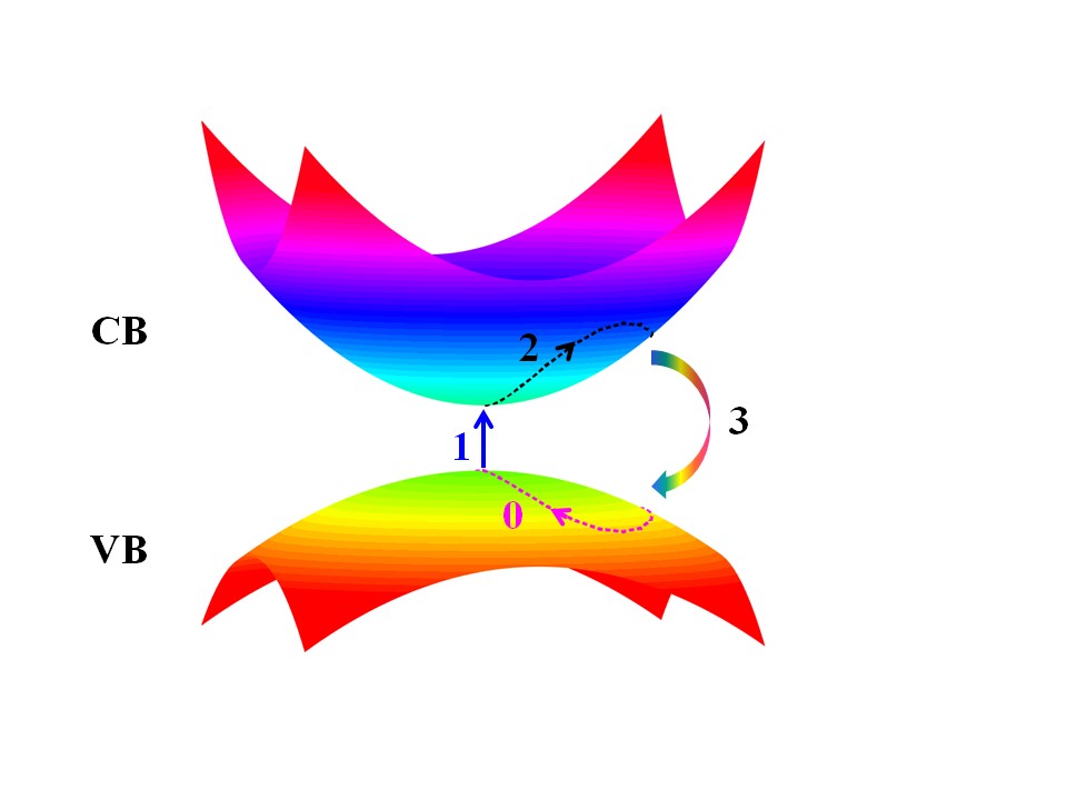 目前的实验结果表明,固体高次谐波产生效率的反常椭偏依赖,预示着固体材料中高次谐波的产生机制与其在气体中存在很大的不同。虽然人们已经发展了许多数值计算模型对固体高次谐波产生过程进行分析,然而,到目前为止依然没有一个很好的物理图像,可以直观的解析固体高次谐波产生过程。这严重阻碍了固体超快技术的发展。陆培祥教授团队成员基于倒空间轨迹图像,提出了固体高次谐波产生的四步模型(预加速,激发,加速,辐射)。在该模型的基础上,不仅可以定量的分析高次谐波产生的光谱,还可以解耦不同量子通道对高次谐波产生的影响。该工作指出,不同于传统的气体高次谐波产生的三步模型(电离,加速,回复),在固体材料中,价电子激发之前的预加速过程在固体高次谐波产生中具有重要的调控作用,特别在具有较大椭偏率激光驱动下,由于预加速作用,使得高次谐波主要由偏离价带顶的电子产生。此外,相对线偏振光驱动,在具有相同振幅的圆偏光驱动下,产生的高次谐波辐射不仅效率得到提高,而且截止能量也有明显拓宽。基于此,该工作指出在固体材料中,谐波辐射的经典再碰转图像不再适用,由于固体中电子的非定域性,谐波辐射应该主要由电子-空穴极化产生。此项研究成果在高次谐波光谱与微观电子动力学过程之间建立起了直观的联系,为将来固体高次谐波的产生与应用提供了重要理论工具。