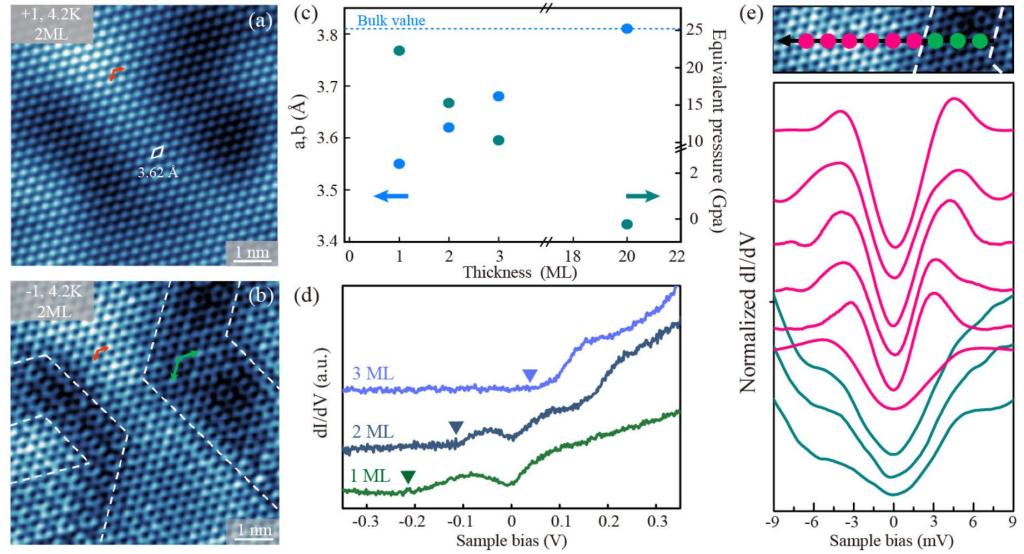 该成果为进一步研究应力诱导的电荷序(单层)以及电荷序与界面超导间的相互作用(双层)提供了崭新的研究平台。同时,我们的实验也开辟了一条制备具有强面内压缩应力的二维材料的途径,通过外延生长于SrTiO3衬底上,有望在二维材料诱导出更高Tc的超导性。