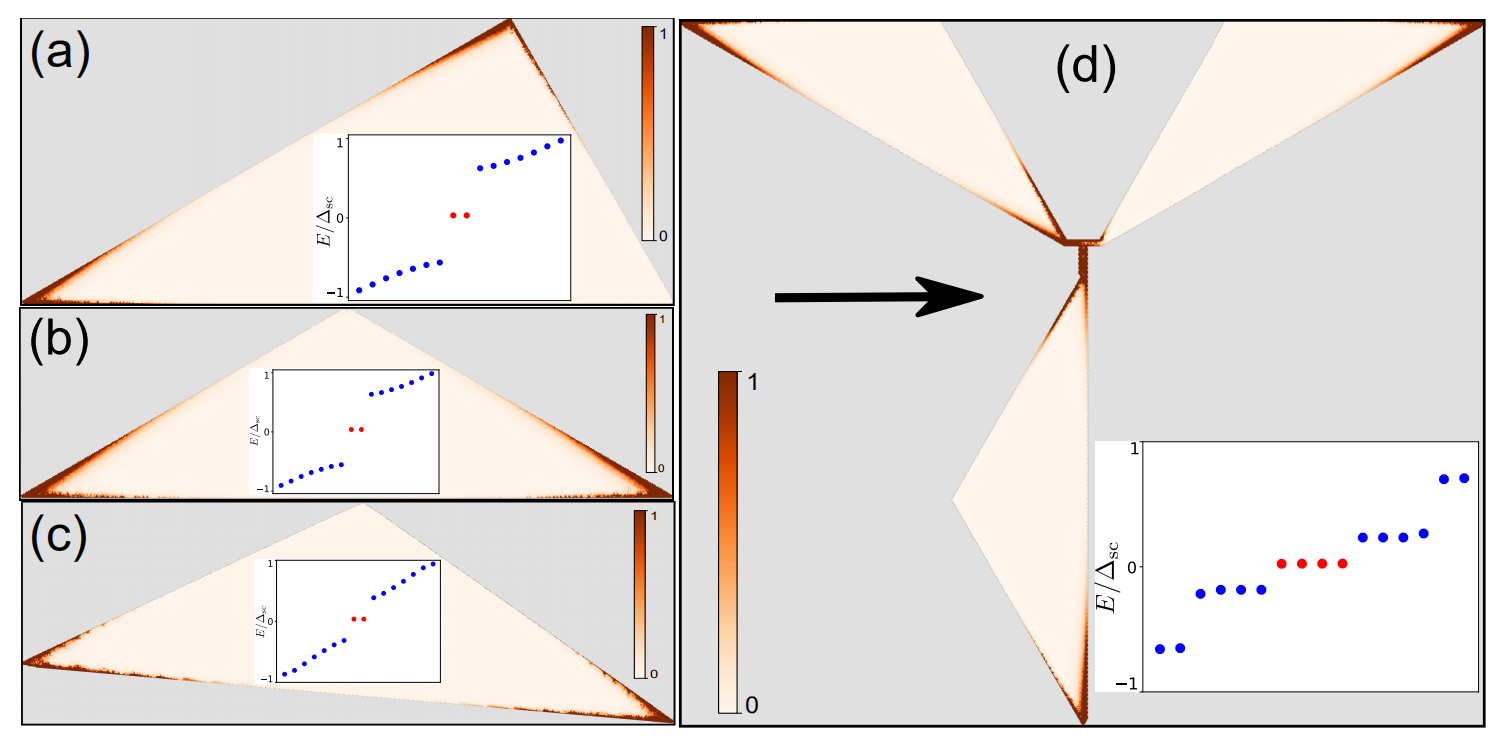 二阶和更高阶的拓扑态是最近拓扑物理学的一个新的研究方向,是对原有拓扑理论的一个更深入的发展。刘鑫教授团队基于二阶拓扑相变理论,提出利用成熟的二维材料技术,并结合传统的s波超导体,可以在二维体系直接实现马约拉纳零能模,并更易于实现可控和可扩展的马约拉纳网络。这对实验验证马约拉纳零能模及其非阿贝尔统计性提供了可能的更有效的方案。
