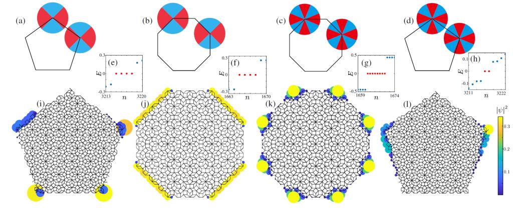 高阶拓扑绝缘体是最近凝聚态物理和拓扑相关研究的热点问题,受到了广泛的关注。之前高阶拓扑有关的研究主要集中在晶格体系,高锦华教授和合作者通过构建具体模型的办法证明了在合适的准晶系统中同样可以实现高阶拓扑态,首次把高阶拓扑的概念拓展到非周期体系中。该工作不仅构建了一个研究高阶拓扑的全新体系,同时也具体给出了准晶高阶拓扑绝缘体的实现方案。