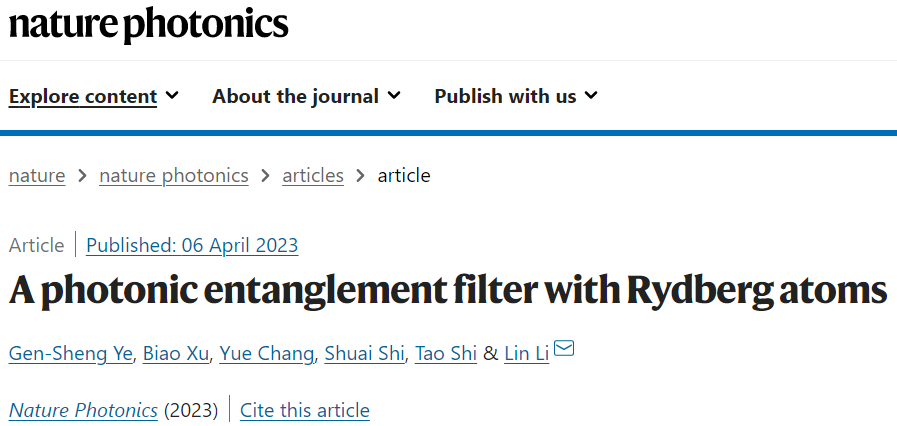 4月6日,《自然-光子学》(Nature Photonics)杂志在线发表了304永利集团引力中心李霖教授课题组的重要研究成果。该研究在国际上首次实现了基于里德堡原子的光量子纠缠过滤器,可用于保护量子纠缠态,并确定性地滤除噪声光子态。课题组利用该过滤器,从极低保真度的输入态中提取出了近乎完美的量子纠缠。这一成果有望应用于分布式量子信息处理、多光子量子光学等量子科技的前沿领域。