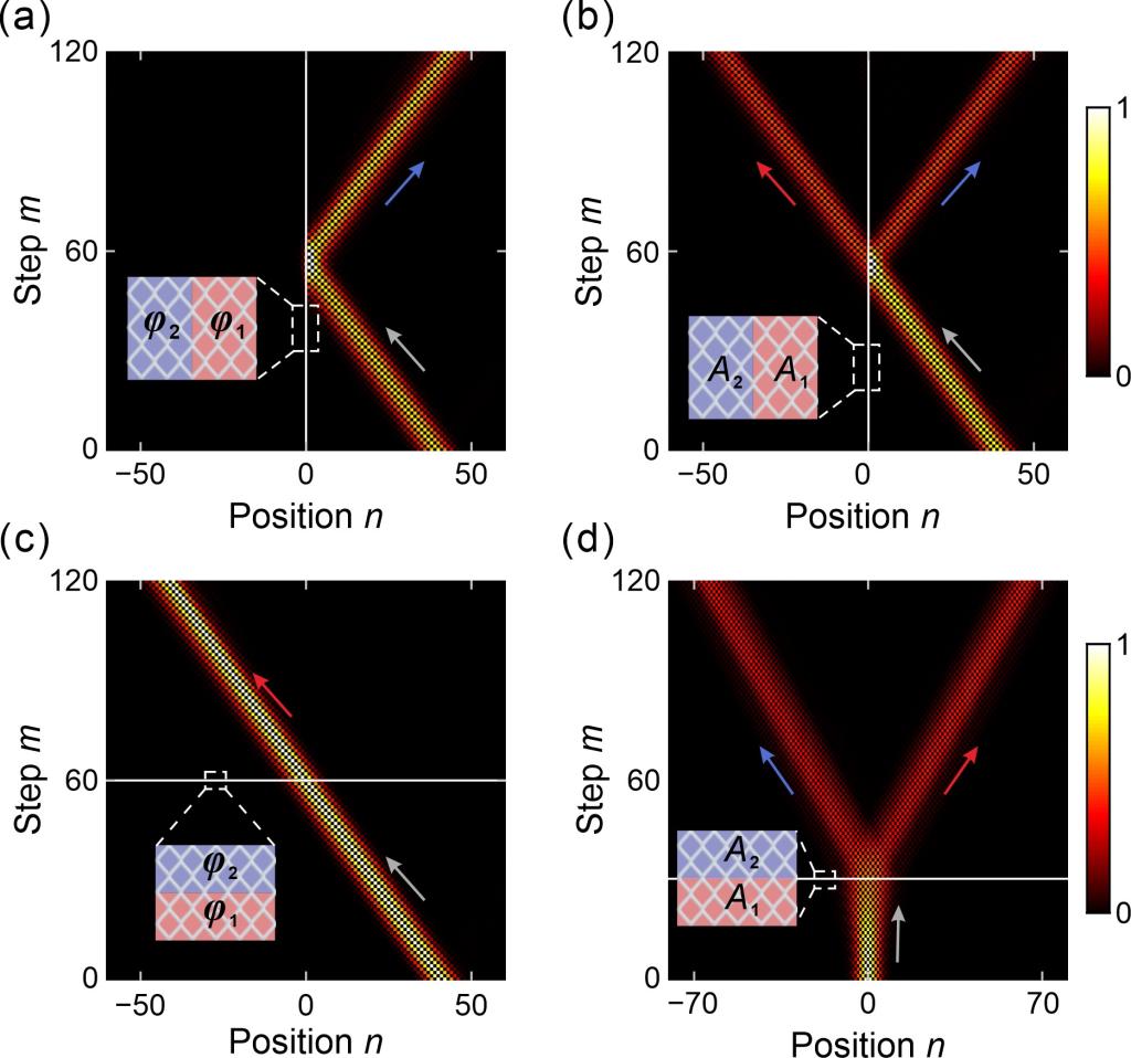 在经典电动力学中,标势和矢势是为了数学上的方便而引入的辅助量,没有直接观测意义。然而在量子力学中,标势和矢势能够对电子波函数的相位施加影响,导致可观测的物理效应的发生,如阿哈罗诺夫-波姆(Aharonov-Bohm,简称AB)效应。光子是中性粒子,不能直接和电磁场发生相互作用。近年来,人们利用光子在特定体系中积累的传播和几何相位进行反向设计,构造包括标势和矢势在内的等效光子规范势,形成等效电场和磁场,从而能够像操控电子一样有效操控光子。通过设计等效光子规范势的分布,可以在光子晶格中形成界面。波包入射到光子晶格中,在界面处发生的折射和反射能够利用规范势进行调控。然而,在以往的工作中,人们大多只关注由标势或矢势等单一规范势形成的界面处的折反射现象,不同光子规范势形成的界面对波包折反射效应的区别和联系以及复合光子规范势导致的界面效应还有待进一步探讨。