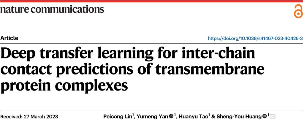 8月15日,公司生物物理团队黄胜友教授课题组在跨膜蛋白相互作用预测领域取得重要进展,相关成果发表于《自然·通讯》(Nature Communications, 2023,14: 4935),题目为《基于深度迁移学习的跨膜蛋白复合物链间接触预测》(Deep transfer learning for inter-chain contact predictions of transmembrane protein complexes)。304永利集团为唯一通讯单位,公司博士生林培聪为论文第一作者,毕业博士生严雨蒙和博士生陶环宇为共同作者,黄胜友教授为通讯作者。值得注意的是,严雨蒙博士为公司2012级物理学实验班本科生,林培聪博士和陶环宇博士为公司2015级严济慈英才班本科生。