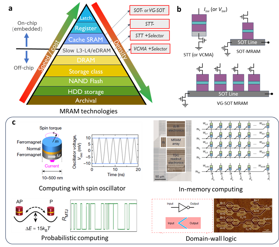 图1: 各种新兴磁性存储器件和基于磁性电子器件的新型计算。