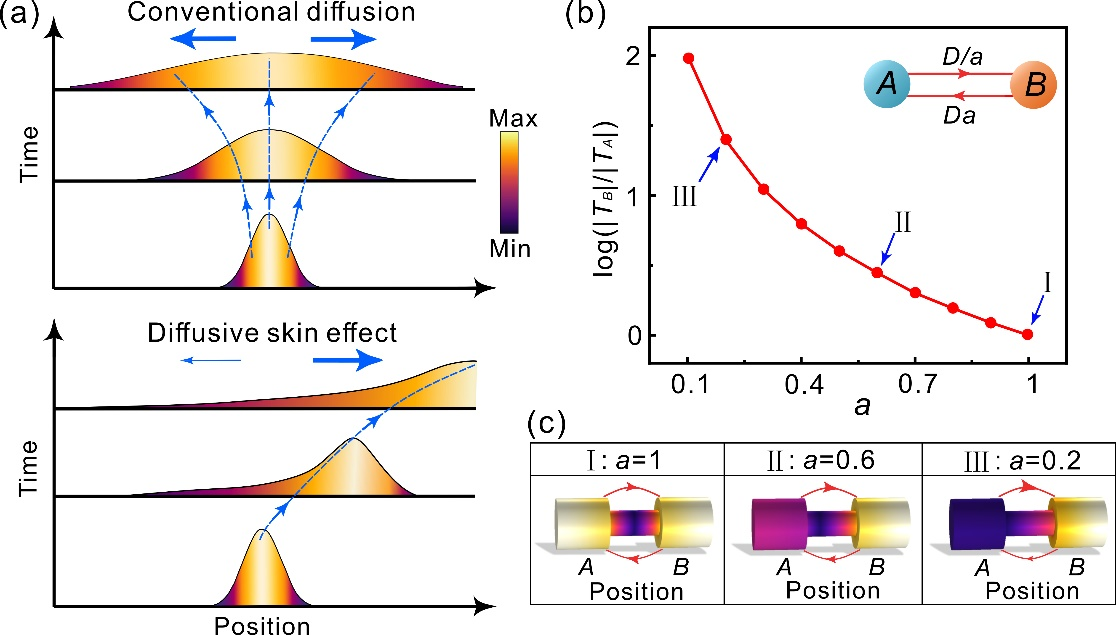 在这项工作中,研究团队通过在热晶格中引入温度场的胞内不对称耦合,可在扩散体系中观测非厄米趋肤效应。该项工作所提出的方法不仅适用于一维阵列,可进一步扩展到更高的维度,也可为通过对流等其他方法实现扩散趋肤效应提供启发。此外,该工作为扩散体系下的非厄米拓扑研究提供新平台,对设计具有高灵敏度和抗变形、缺陷的功能热器件提供了新思路。