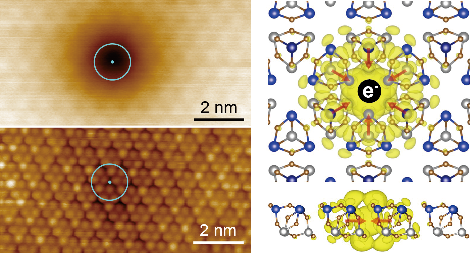 极化子主要存在于由共价键或离子键结合的材料体系中,如过渡金属氧化物、卤化物,钙钛矿和有机聚合物等。最近,人们发现非共价相互作用,如色散吸引力和泡利排斥力,可跨过范德华间隙提供强电子和振动耦合,这种键合作用被称作准键。探索额外电子能否通过范德华间隙中的这种准键而稳定存在,进而产生极化子,具有重要意义。