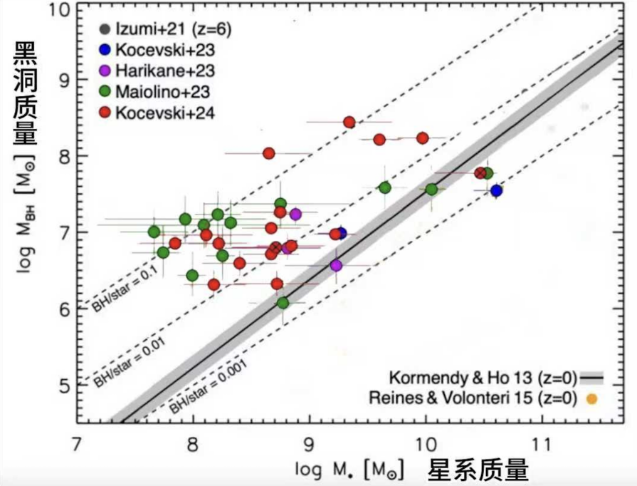 小红点黑洞质量和星系质量远远偏离近邻星系只能够黑洞与星系关系,有的小红点星系黑洞质量甚至和星系质量相当。