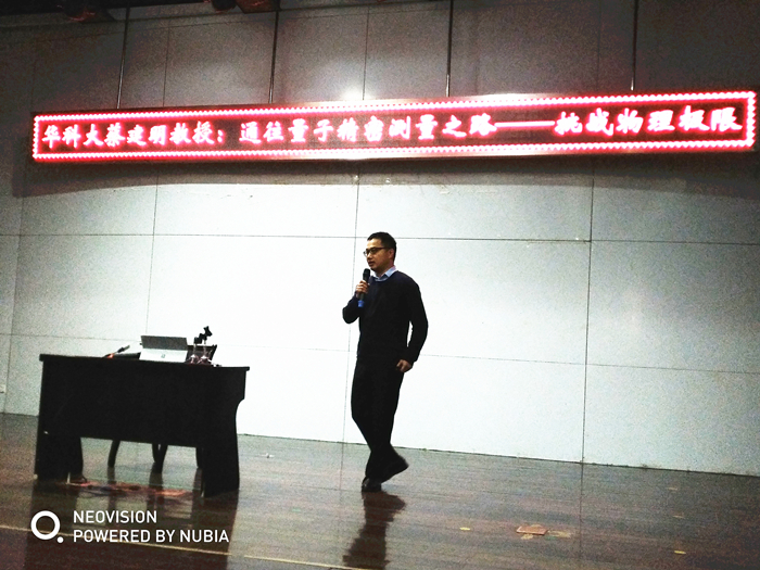 4、2017年11月11日,蔡建明教授赴武汉市第三中学开展题为《通往量子精密测量之路--挑战物理极限》的科普报告。