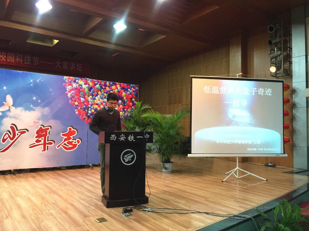 10、2017年12月7日,王顺教授赴陕西省西安铁一中学开展题为《低温世界的量子奇迹—超导》的科普报告。