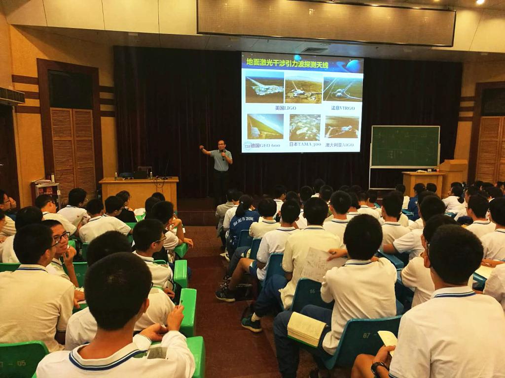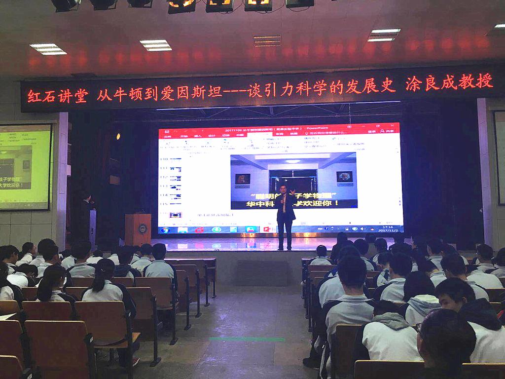 3、2017年11月2日,涂良成教授赴湖北省武昌实验中学开展题为《从牛顿到爱因斯坦—谈引力科学发展史》的科普报告。