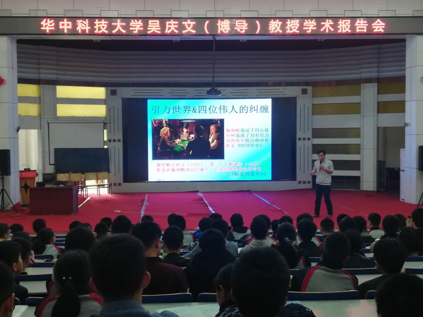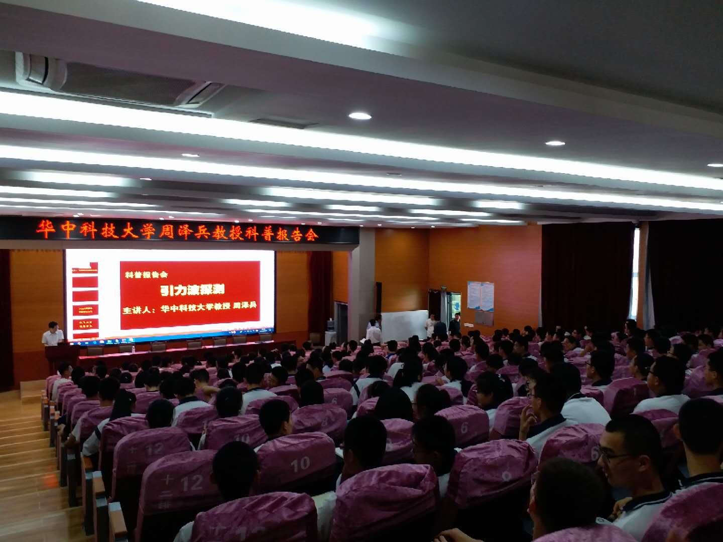 8、2019年5月21日,吴庆文教授赴武汉二中开展题为《解读人类首张黑洞照片》的科普报告。