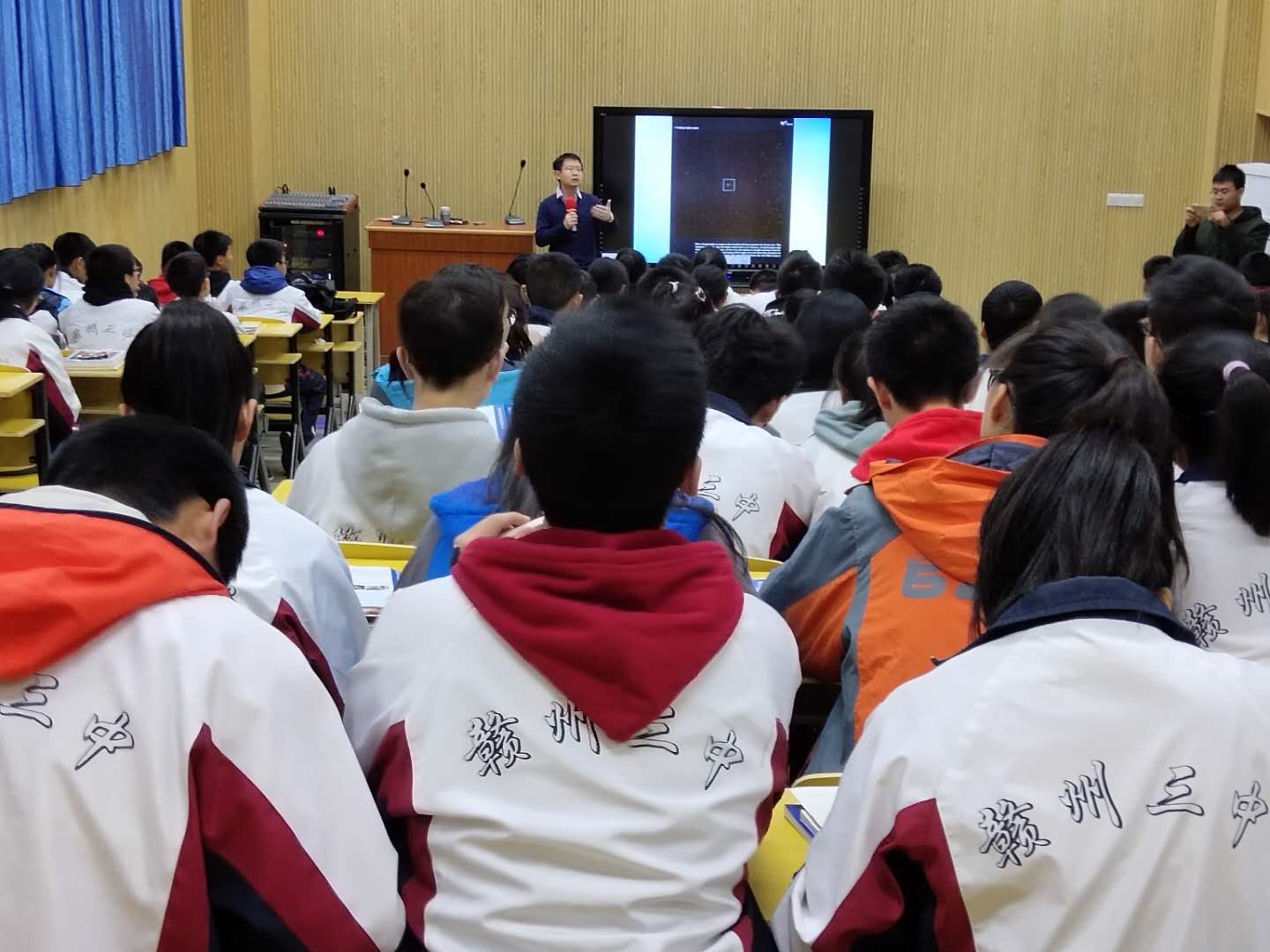18、2019年11月21日,黎敏教授分赴江西赣州中学、赣州三中开展两场题为《神奇的飞秒激光--看见原子分子的眼睛》的科普报告。