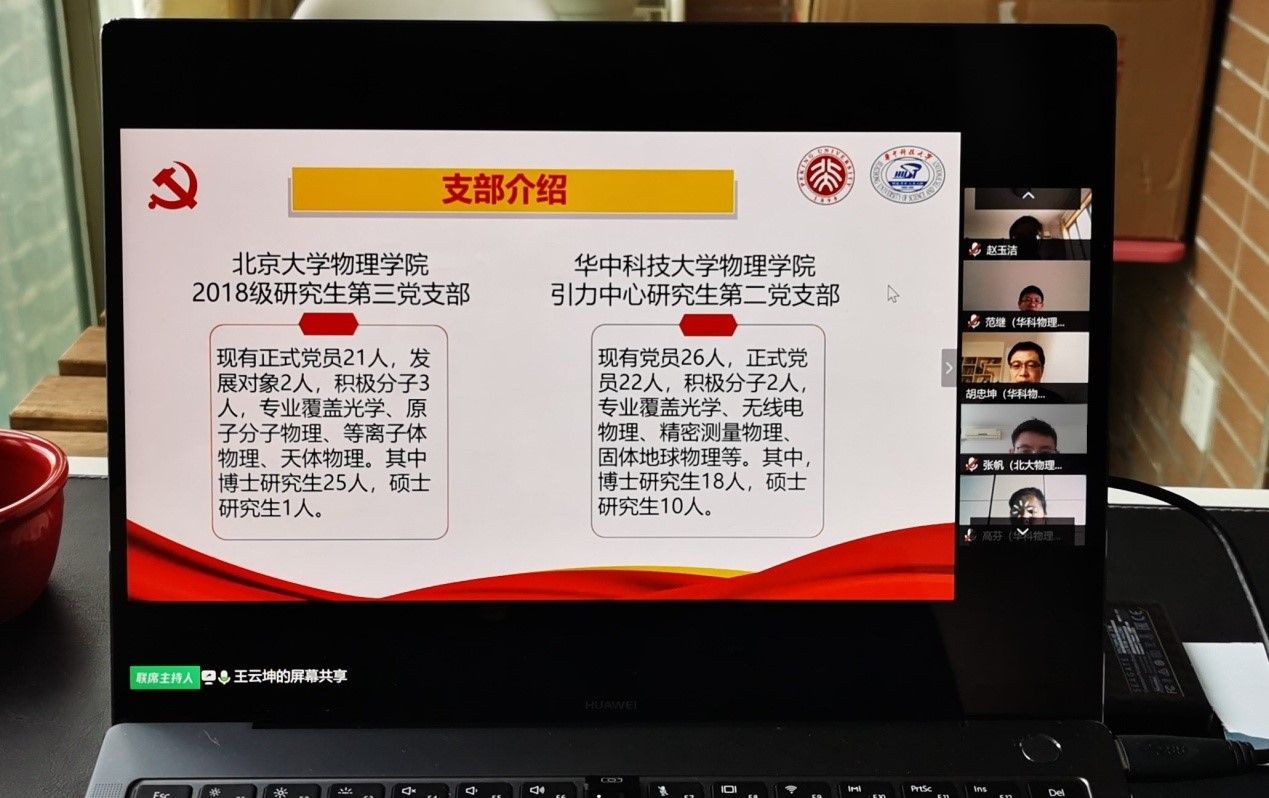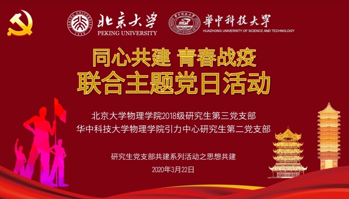 患难粹真情,京汉共守望。近日,304永利集团和北京大学304永利集团携手开展研究生党支部共建系列活动。3月22日上午9:00,304永利集团引力中心研究生第二党支部和北京大学2018级研究生第三党支部“同心共建青春战疫”联合主题党日在线上准时开始,共67名师生党员参加了此次活动。除两个支部的党员外,活动还邀请了304永利集团同济医公司附属协和医院肿瘤中心党支部韦洁霖医生、北京大学公司党委书记杨金波老师、公司公司党委书记张凯老师、引力中心党支部书记胡忠坤老师、引力中心主任周泽兵老师以及两院负责思政工作的老师参加。