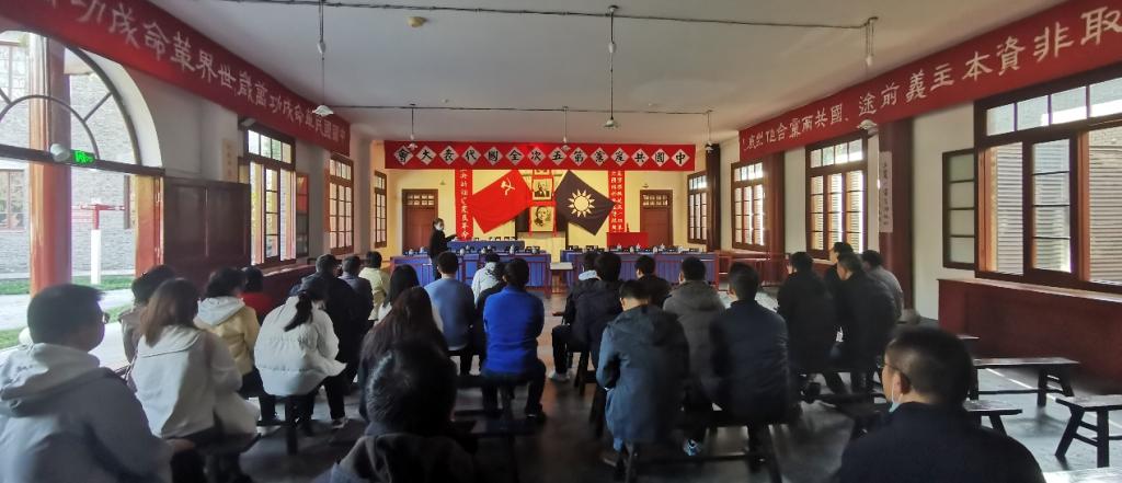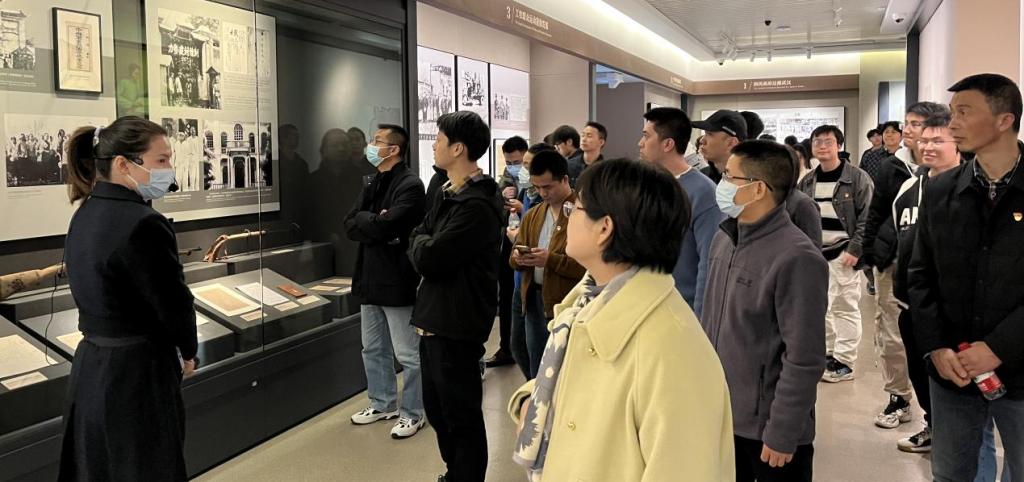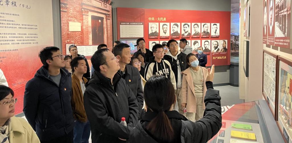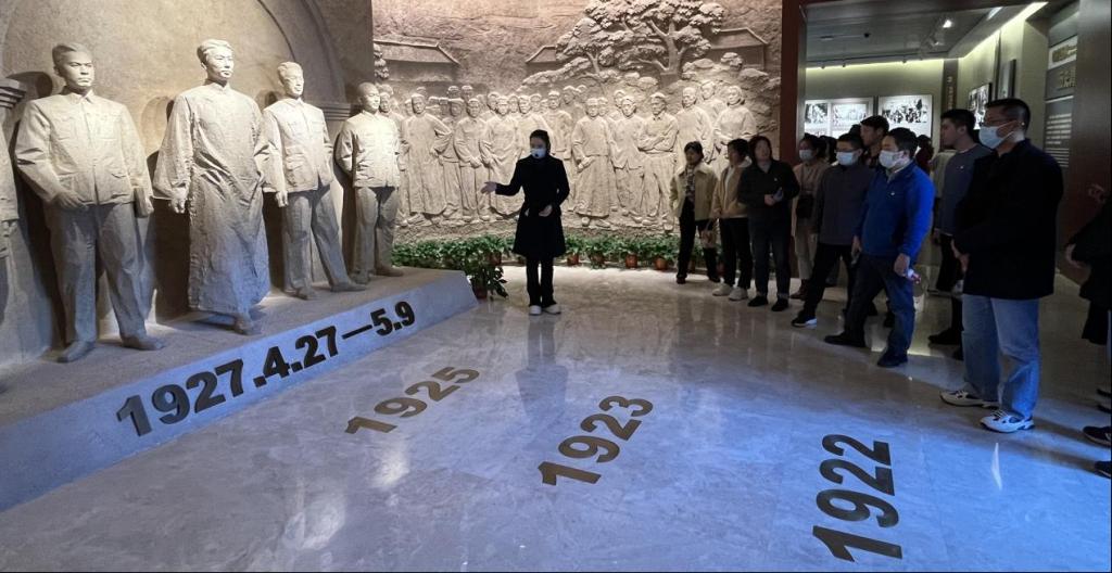 跟随讲解员,党员同志们来到中共五大会址纪念馆。1927年中国革命处在危急关头,中国共产党在这里召开了第五次全国代表大会,作出了挽救革命挽救党的重大决议。馆内逼真复原了96年前中共五大开幕会会场的场景,中共五大历史陈列展馆由“高潮与危机”“贡献与局限”“应变与转折”三大展区组成,通过高科技手段的运用,再现了一九二七年前后那段令人扼腕的历史情景。党员们在馆内驻足瞻仰珍贵的历史文物,追忆党的艰苦奋斗历程,在革命精神的洗礼中更加坚定理想信念,更加明确使命担当。