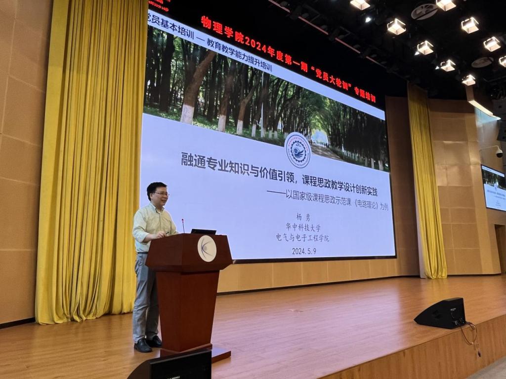本次培训为全院教师邀请到电气公司杨勇教授,作主题为“融通专业知识与价值引领,课程思政教学设计创新实践”的讲座。杨教授围绕国家级课程思政示范课《电路理论》,从讲解课程思政的概念与内涵入手,分享了专业课程思政教学设计的一些理念与方法,提出了课程思政3.0的一些思考,即:课程思政的课堂实践一定是要与社会实践深度融合,一定是要与高水平的学术实践深度融合,课程教学一定需要与人工智能深度融。讲座结束后杨教授与广大教师们就如何将思政内容与理科课程充分融入进行了探讨。