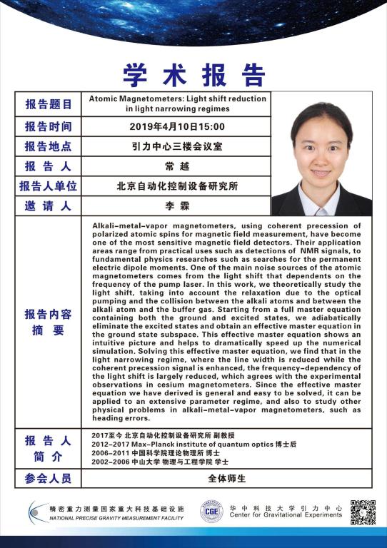 学术报告(20190410)Atonic Magnetometers: Light shift reduction in light narrowing regimes