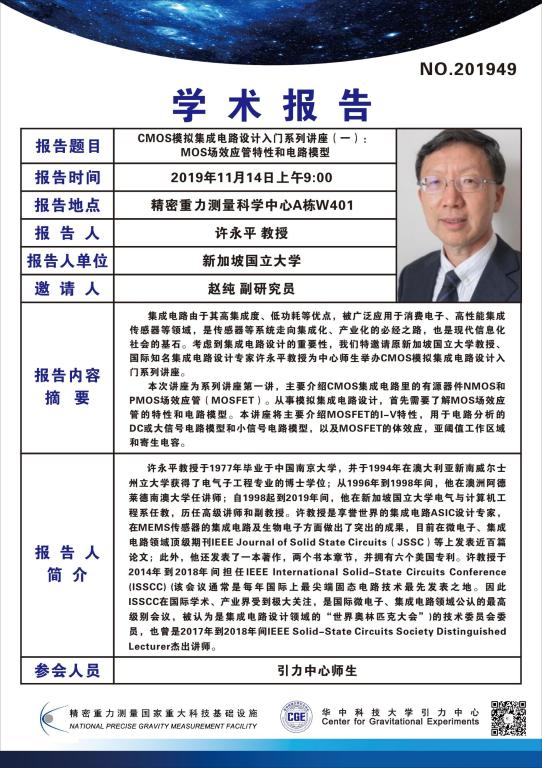 学术报告(20191114)CMOS模拟集成电路设计入门系列讲座(一):MOS场效应管特性和电路模型
