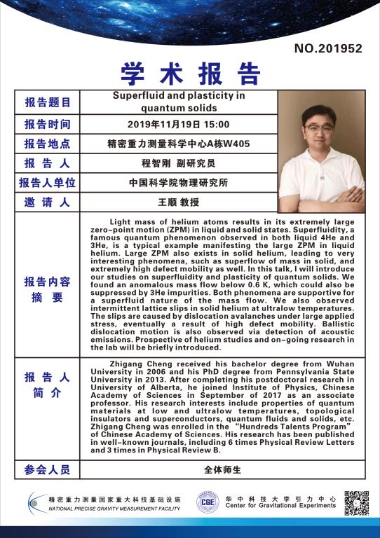 学术报告(20191119)Superfluid and plasticity in quantum solids