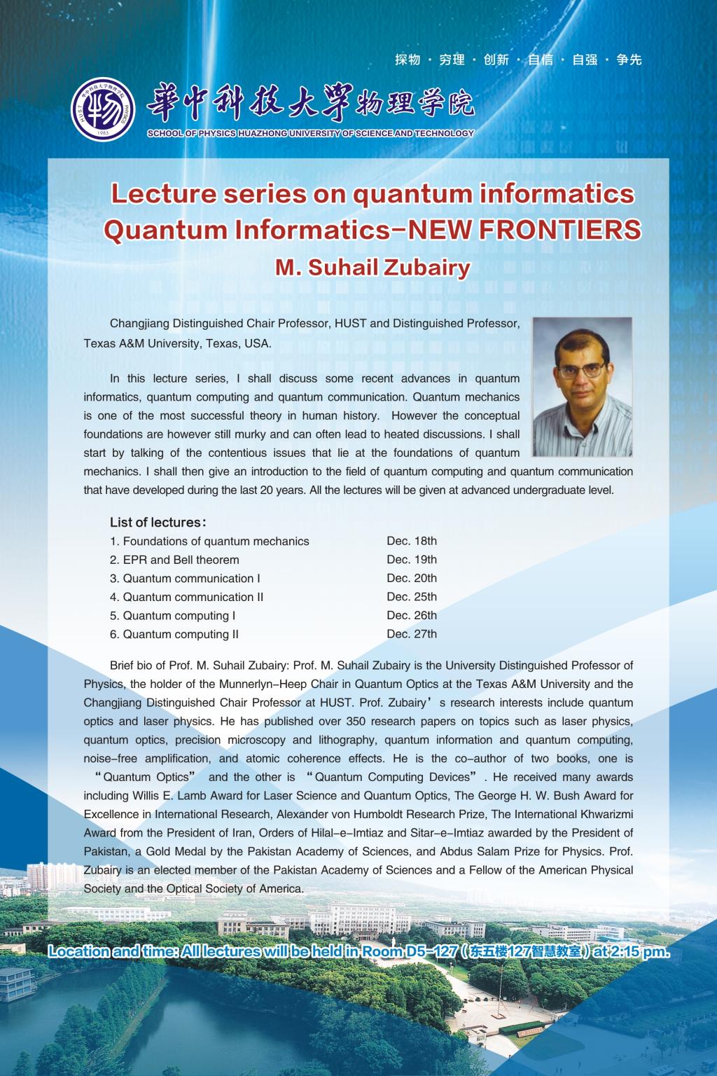 学术报告(20191218-27)Lecture series on quantum informatics Quantum Informatics-NEW FRONTIERS (20191118-27)