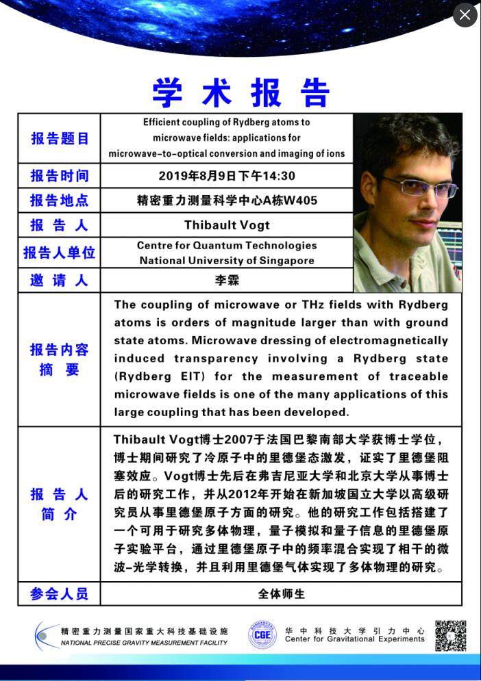 学术报告(20190809)Efficent coupling of Rydberg atoms to microwave fields: applications for microwave-to -optical conversion and imaging of ions